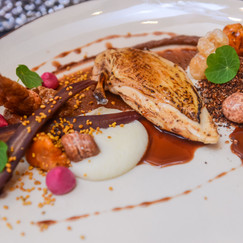 L-a urmat Chef Ciprian Nicolescu, Executive Chef Ramada Plaza Craiova, care a facut o demonstratie live a propriului slogan “obsession for perfection”, creand doua farfurii, “marea si pamantul” - reinterpretari culinare ridicate la rang de arta.